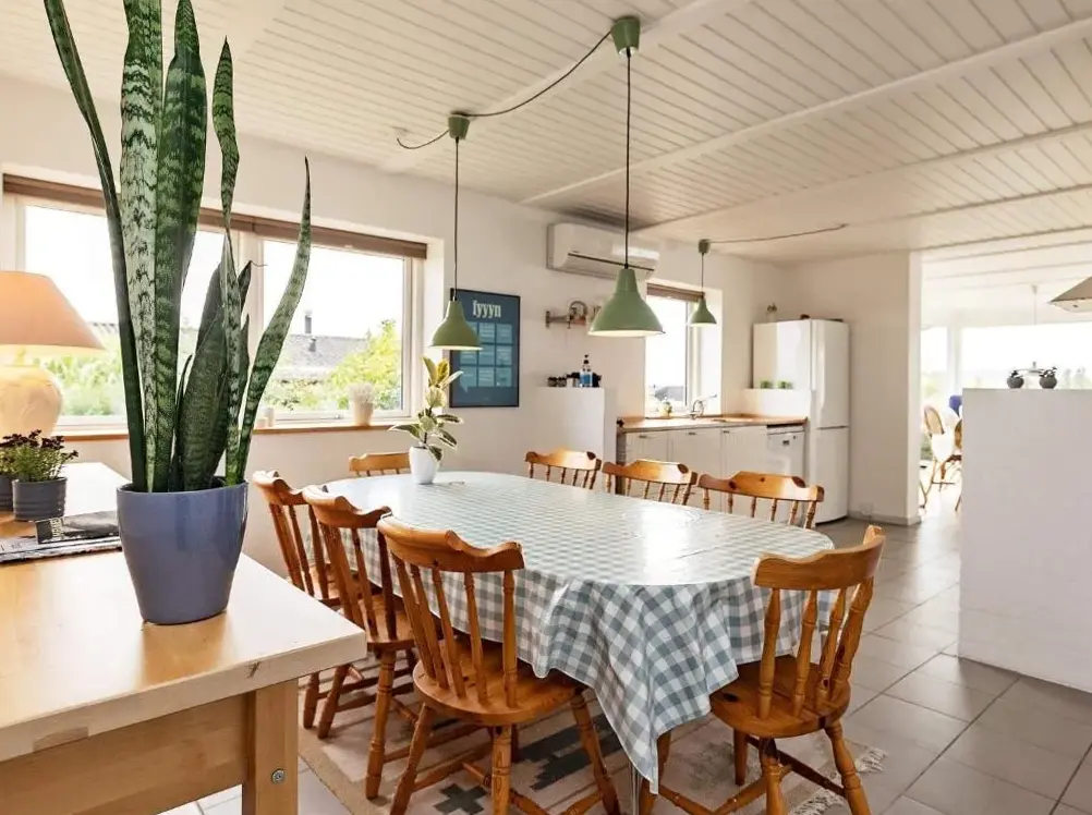 Meget pænt møbleret hus med alt hvad du har brug for. Køkken fuldt møbleret, gode retter, bestik, briller, gryder osv. Alt i meget god stand, meget rent. Meget flot levende spiseplads, 4 soveværelses-gode senge, 2 badeværelser, smuk sauna og boblebad. At føle sig godt